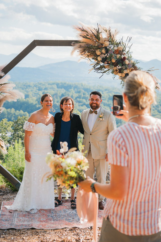 Amber and William decided to leave the salty spray of their coastal NC home and venture to the lush, mountainous beauty of Western North Carolina to say, "I do." And, boy, did they pick a magical spot! Perched high among the trees, the Earth & Sky Dwellings offered the perfect blend of whimsy and drama for their intimate ceremony.
